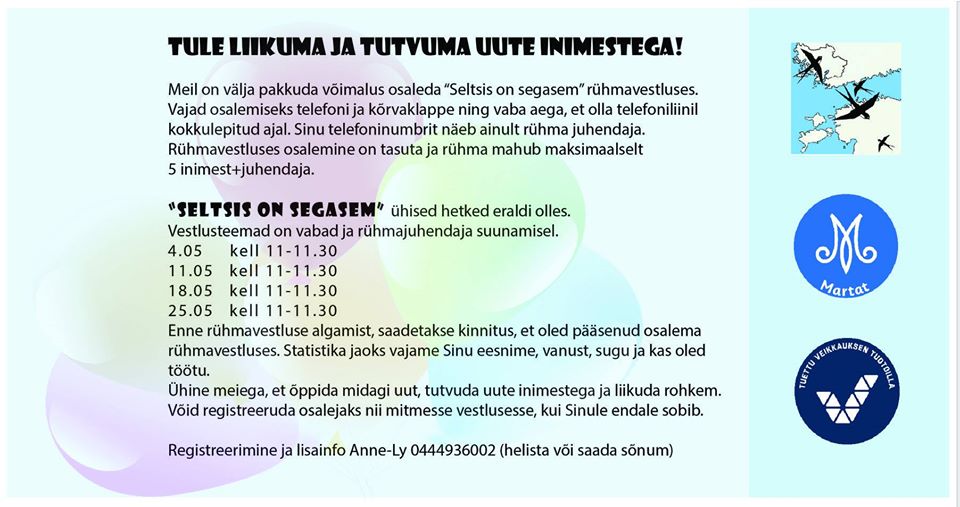 Kahjuks praegu füüsiliselt kokku ei saa, aga kohtume facebooki ja telefoni teel: